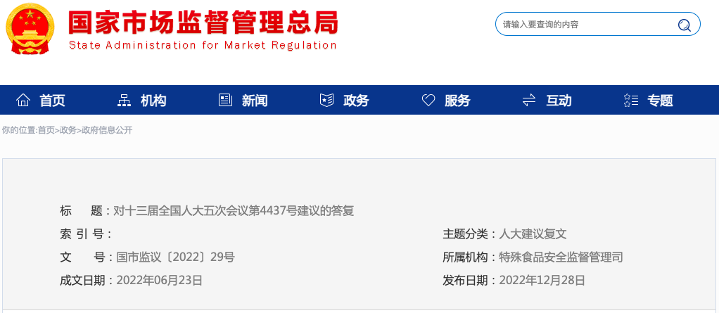 我們非常贊同您在建議中提到的“盡快出臺特醫食品臨床使用相關配套政策和法規,解決特醫食品在醫院應用的通路問題”。根據相關食品安全國家標準規定,特醫食品必須在醫生或臨床營養師指導下,單獨或與其他食品配合食用。為規范和促進特醫食品在醫療機構經營使用行為,我們主動與國家衛生健康委加強溝通,推動特醫食品在臨床機構規范使用,同時指導各省級市場監管部門聯合或配合省級衛生健康行政部門發布相關管理制度。截至目前,吉林、黑龍江、上海、江蘇、湖北等省(市)發布了相關文件,解決特醫食品在臨床機構使用的瓶頸和堵點,有效規范醫療機構的合理使用,保障食品安全,促進產業發展。
