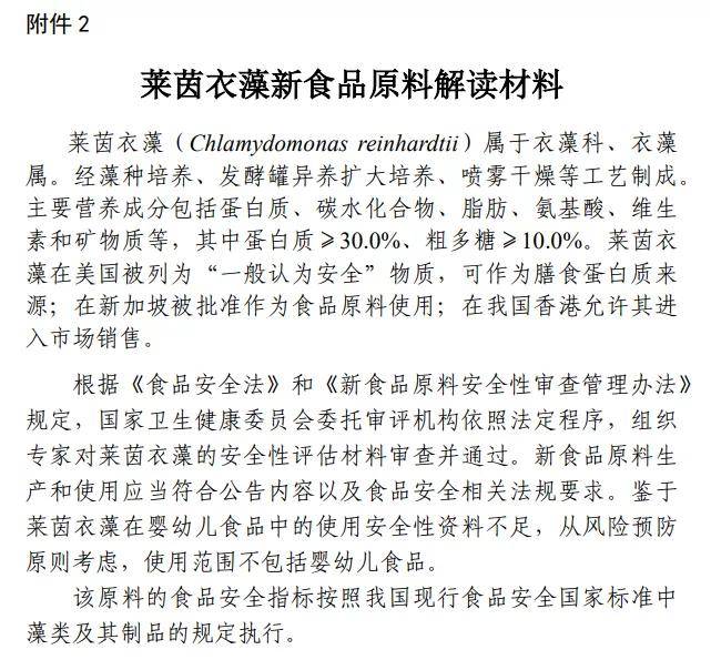 附件為萊茵衣藻新食品原料征求意見內(nèi)容及相關(guān)解讀材料,請自行下載閱讀。如有意見或建議,請反饋至xspyl@cfsa.net.cn,并在郵件主題中注明“新食品原料意見反饋”。